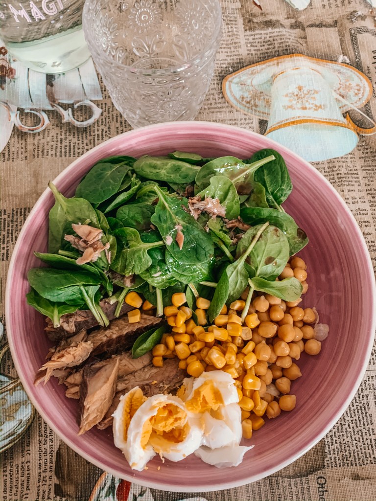 Comidas y Cenas Ensalada rápida. Publicado por cibussanus el 22 enero, 2020 Ingredientes: Espinacas Maíz de lataFiletes de Caballa enlatados (Marca Lidl)Garbanzos de bote 1Huevo Preparación: Servir tal cual, hervir el huevo y aliñar al gusto con las especias que desees. Compártelo: Compartir en X (Se abre en una ventana nueva) X Comparte en Facebook (Se abre en una ventana nueva) Facebook Me gusta Cargando... Relacionado